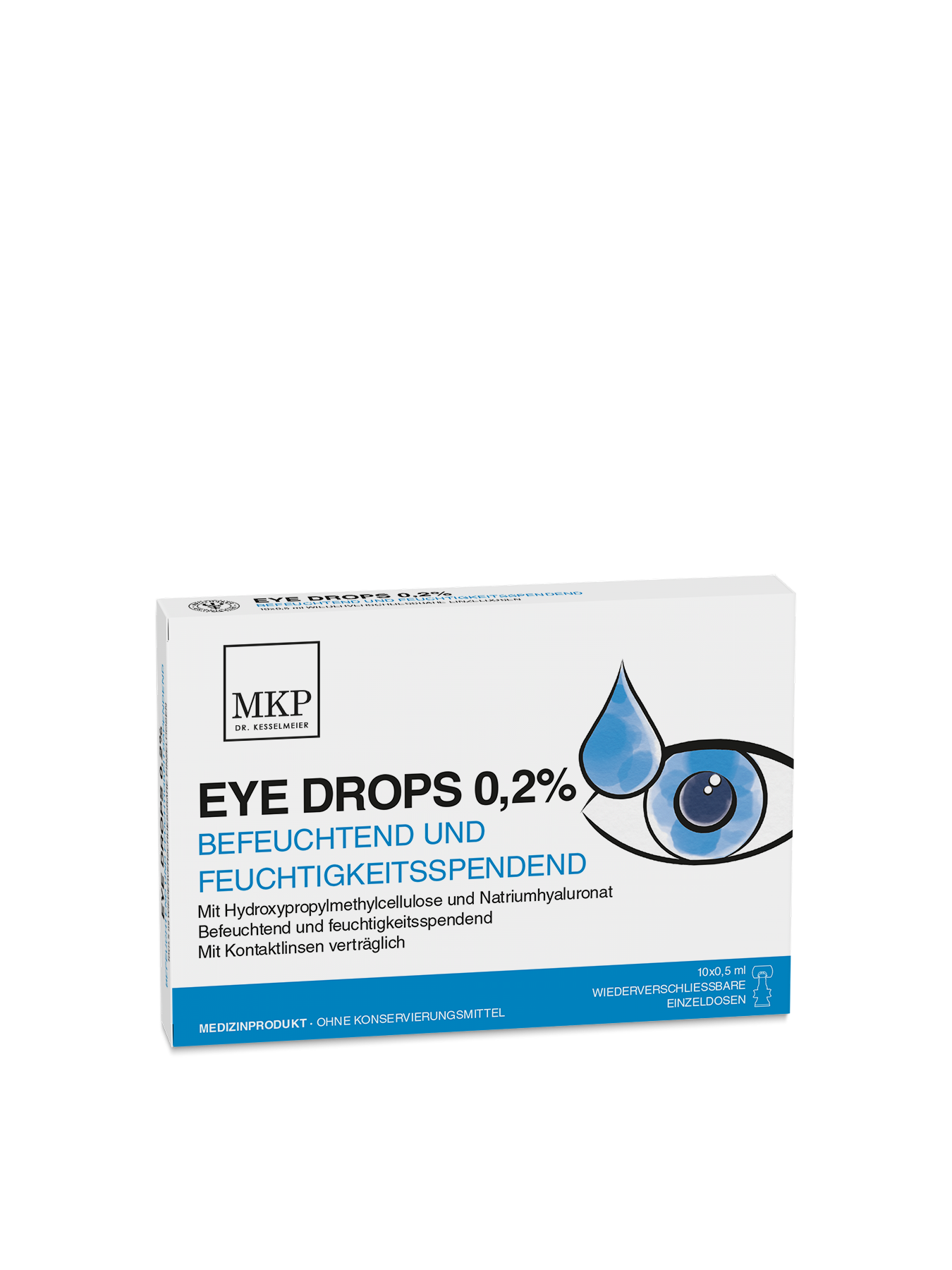 Eye Drops 0,2% sind sterile, konservierungsmittelfreie Augentropfen mit 0,2 % Hyaluronsäure und 0,2 % Hypromellose. Sie spenden langanhaltend Feuchtigkeit und lindern Trockenheit, Brennen und Reizungen der Augenoberfläche.